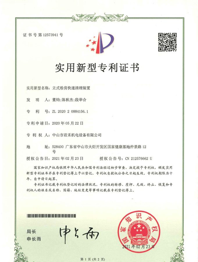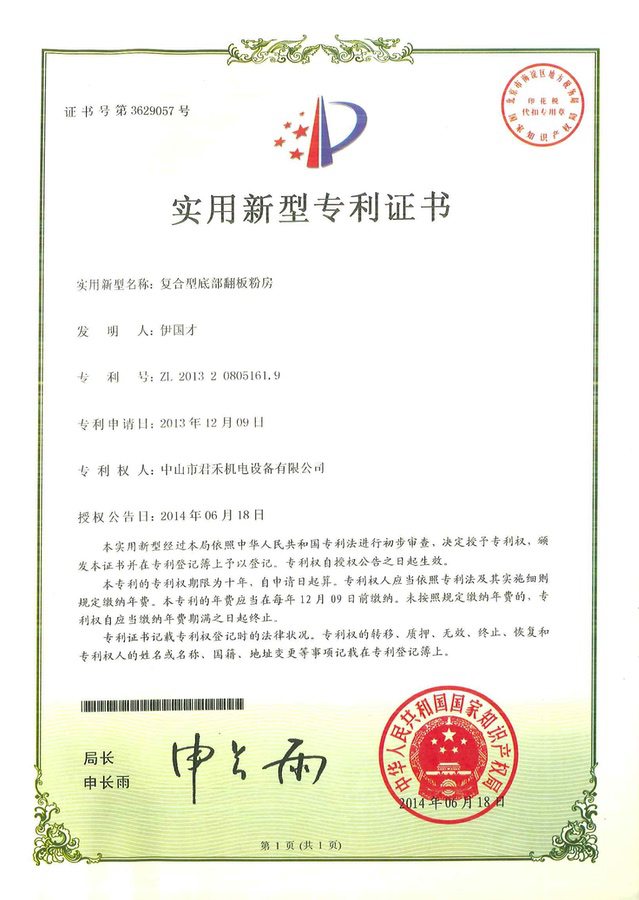 供粉中心 外观设计专利证书